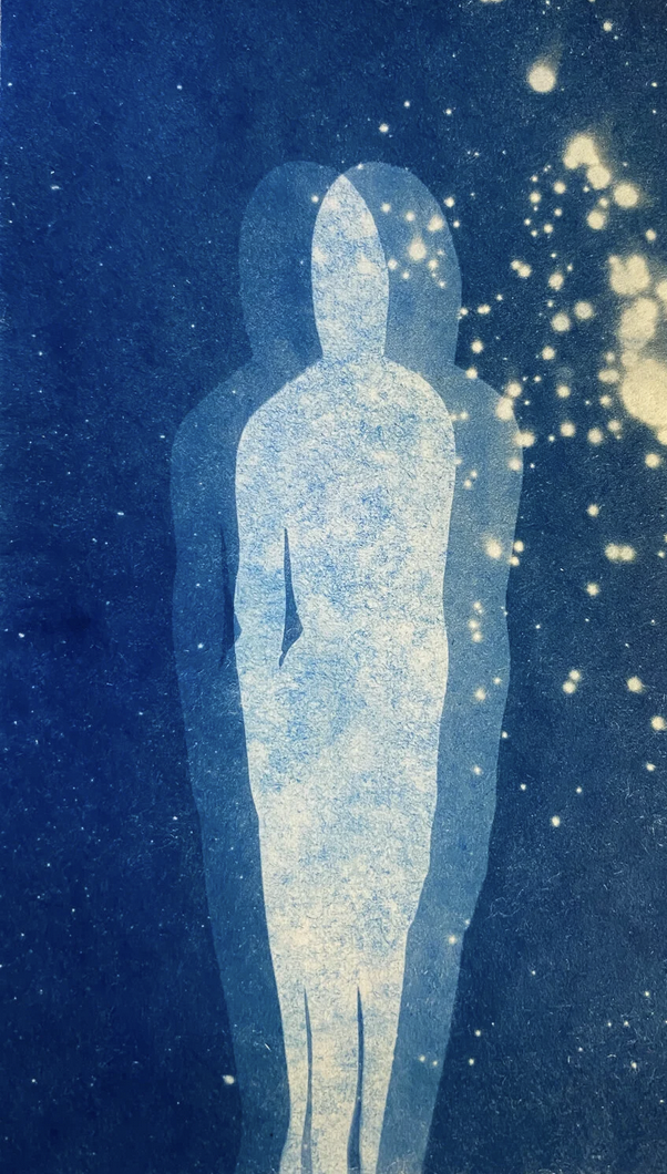 Unique photogram cyanotype on water color paper.